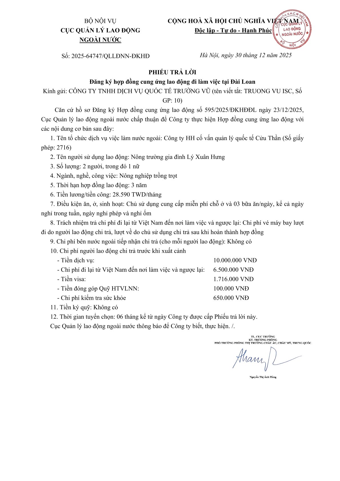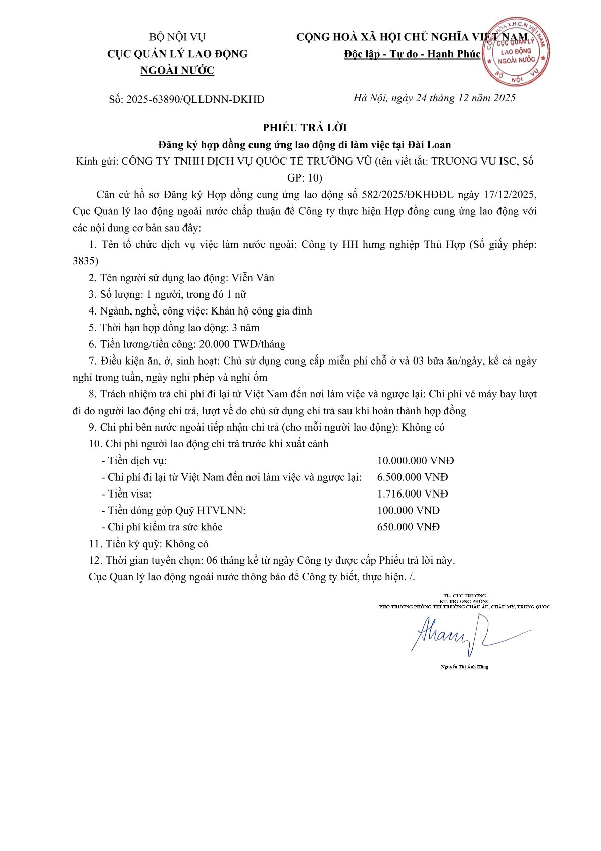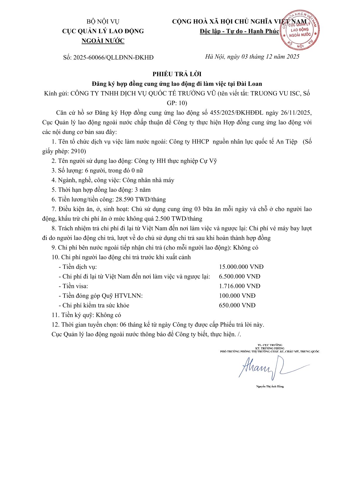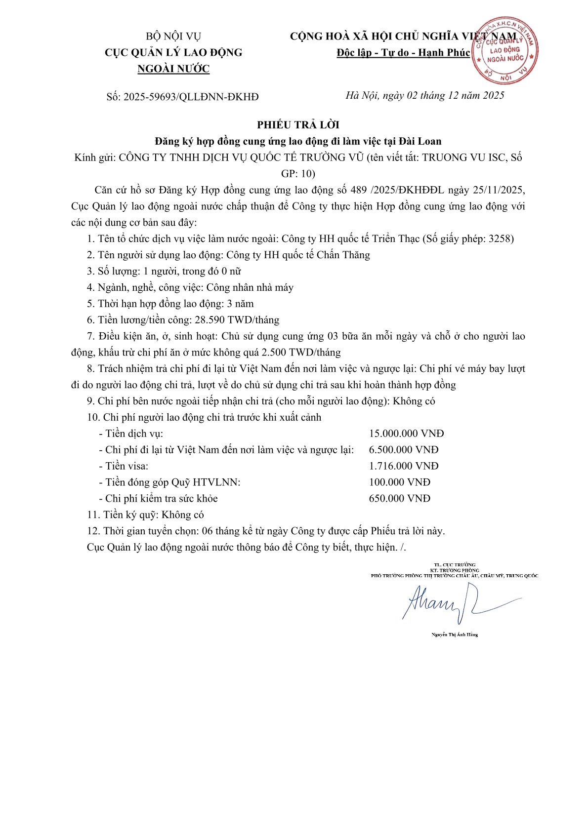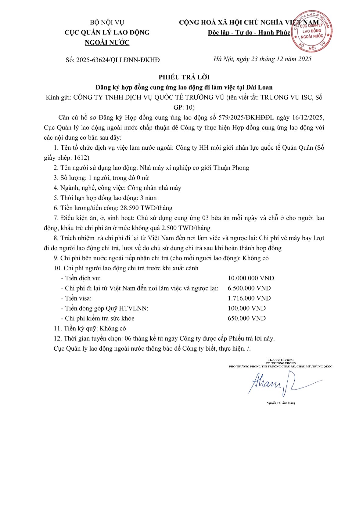 Tin tức, Tin tức về lĩnh vực du học, Tuyển dụngThông báo tuyển dụng lao động làm việc tại Đài Loan tháng 12 năm 2025 15 Tháng 1, 2026 - Trường vũ - 12 lượt xem
