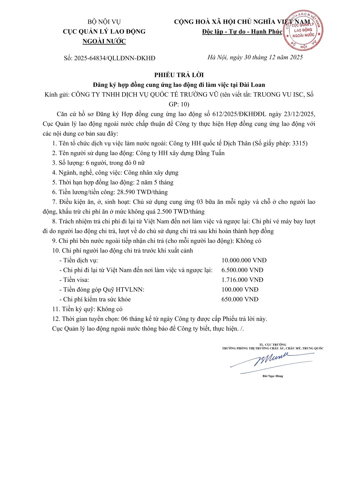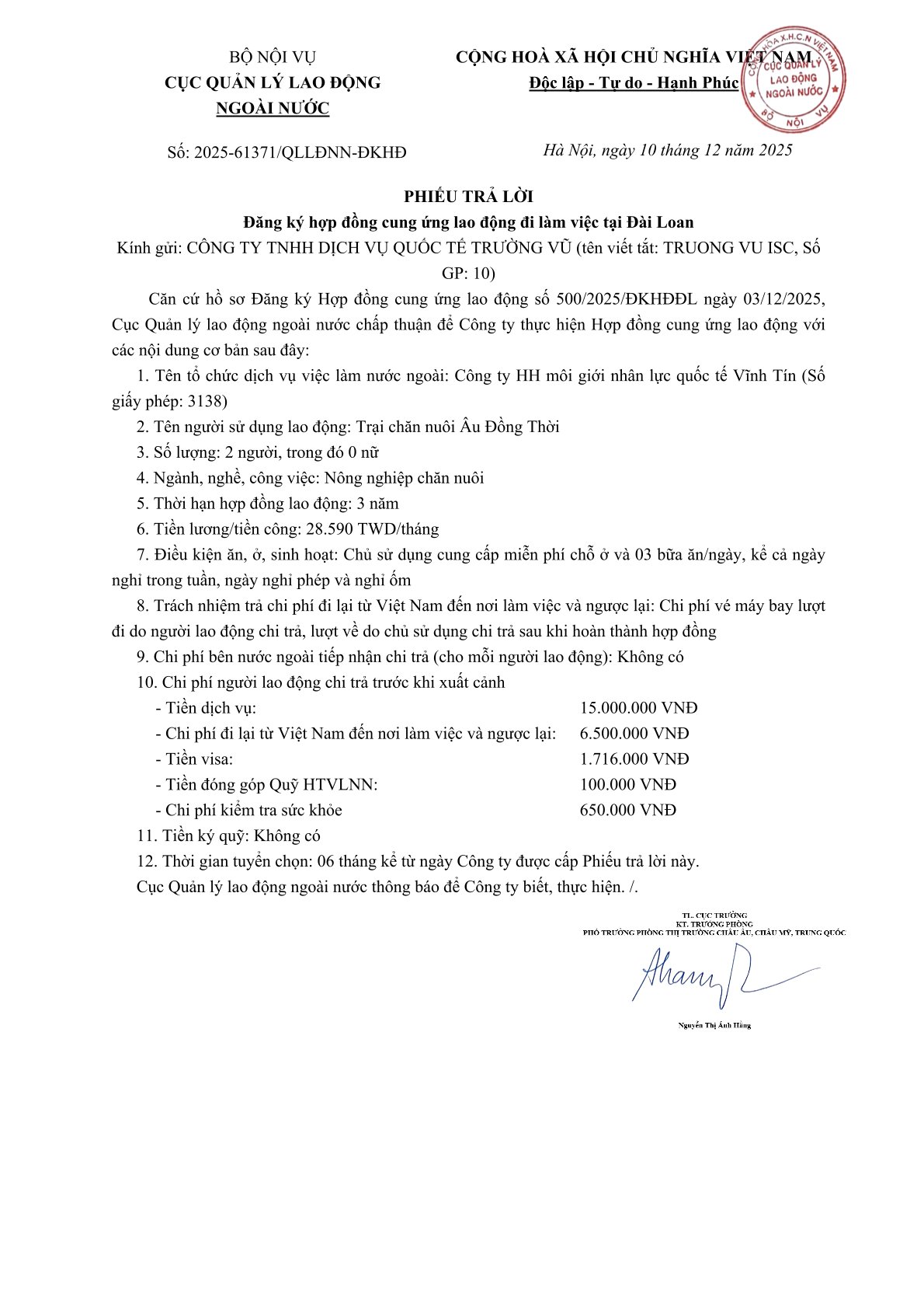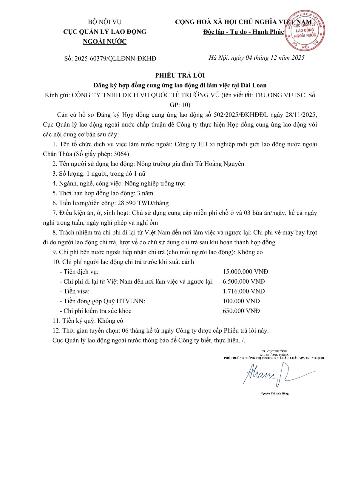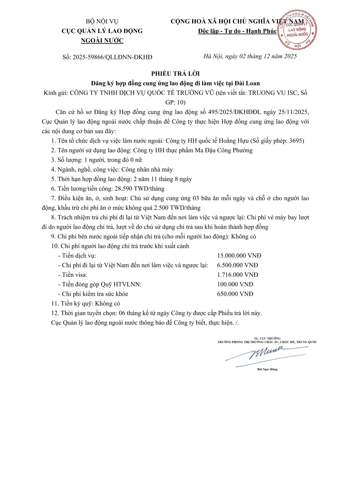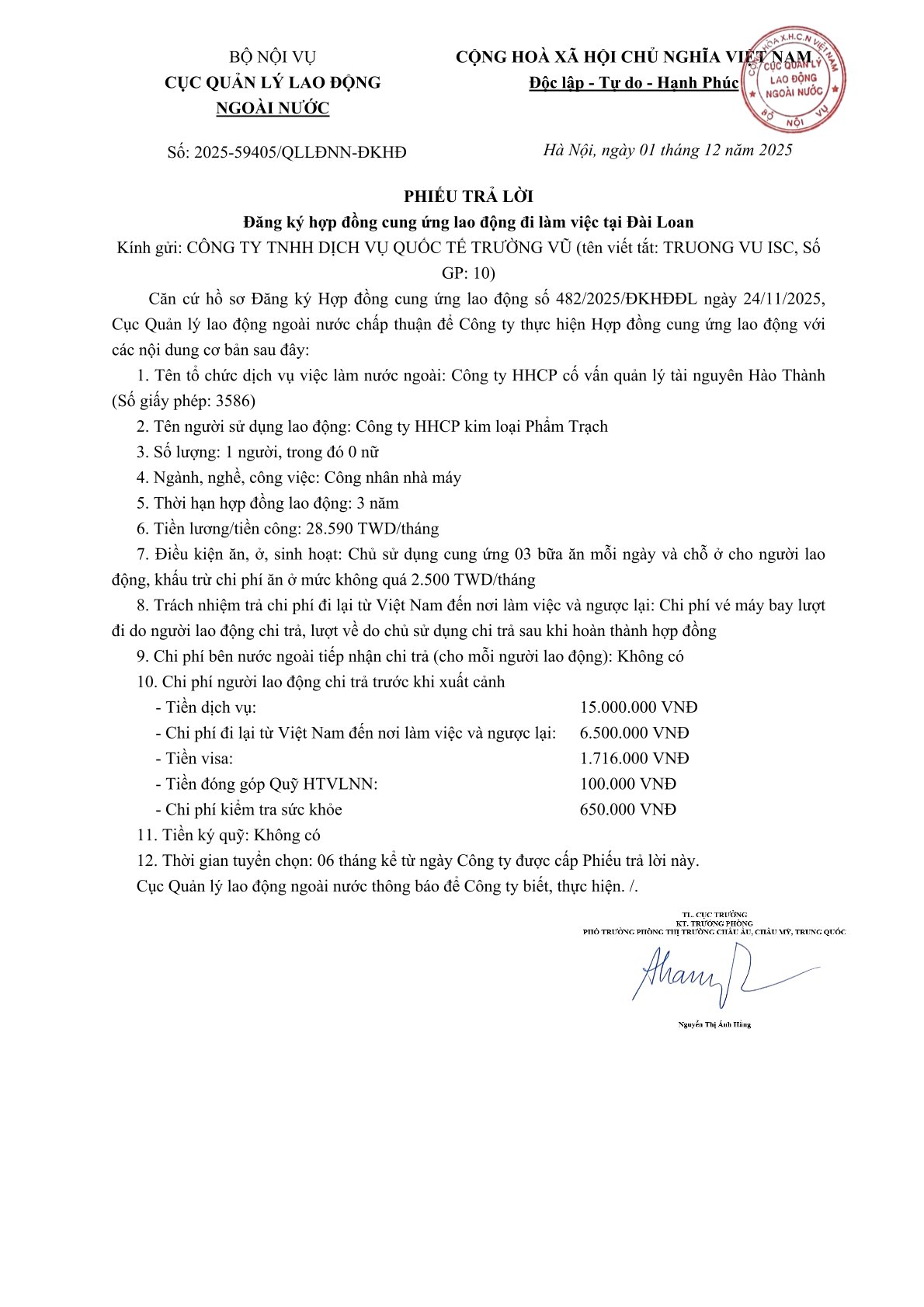 Tin tức, Tin tức về lĩnh vực du học, Tuyển dụngThông báo tuyển dụng lao động làm việc tại Đài Loan tháng 12 năm 2025 15 Tháng 1, 2026 - Trường vũ - 12 lượt xem