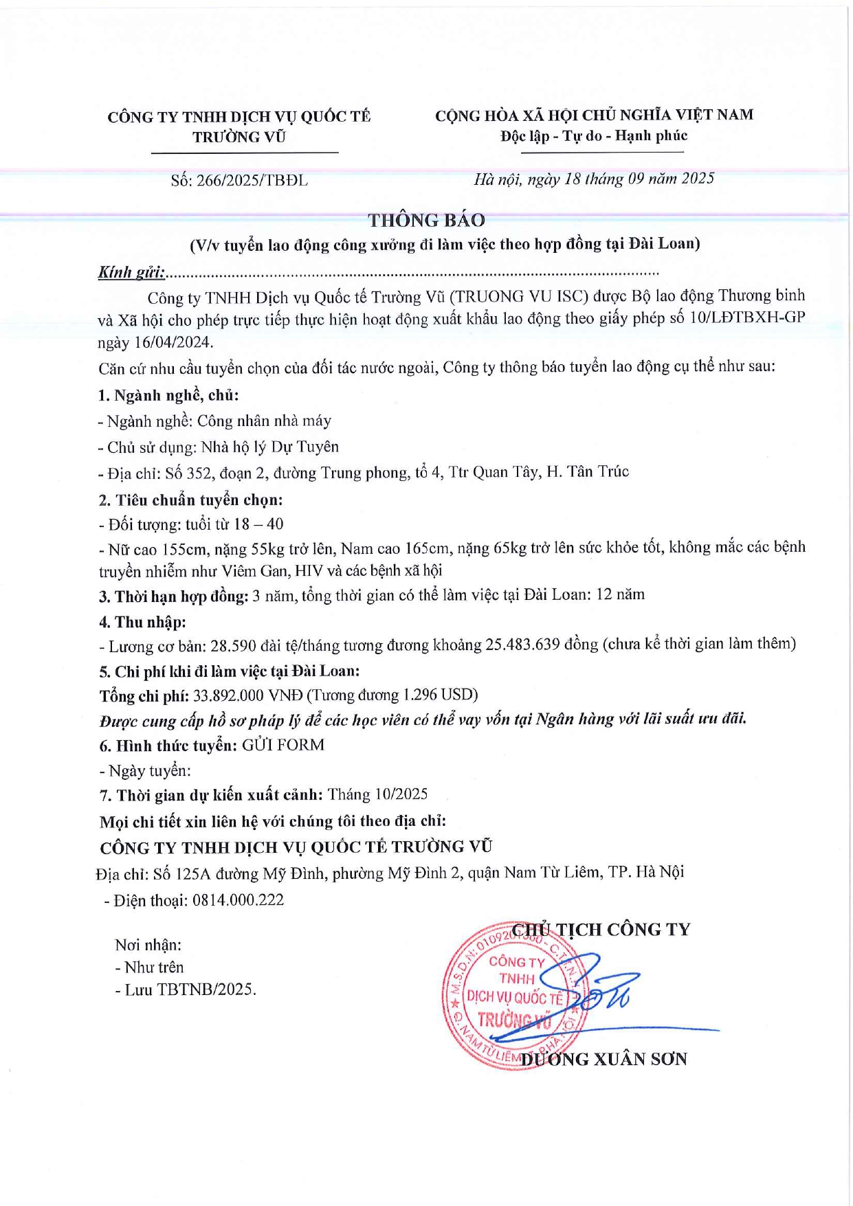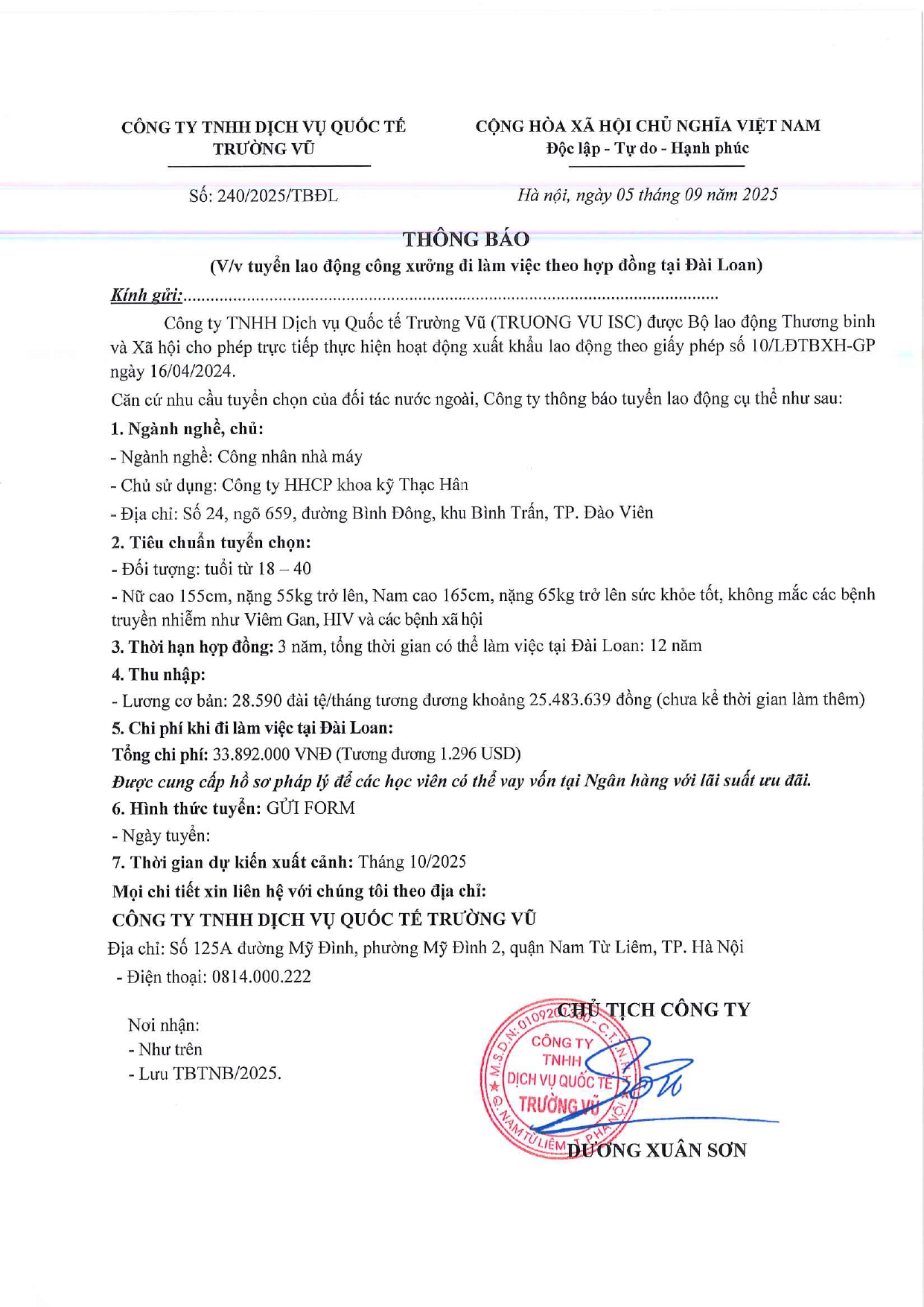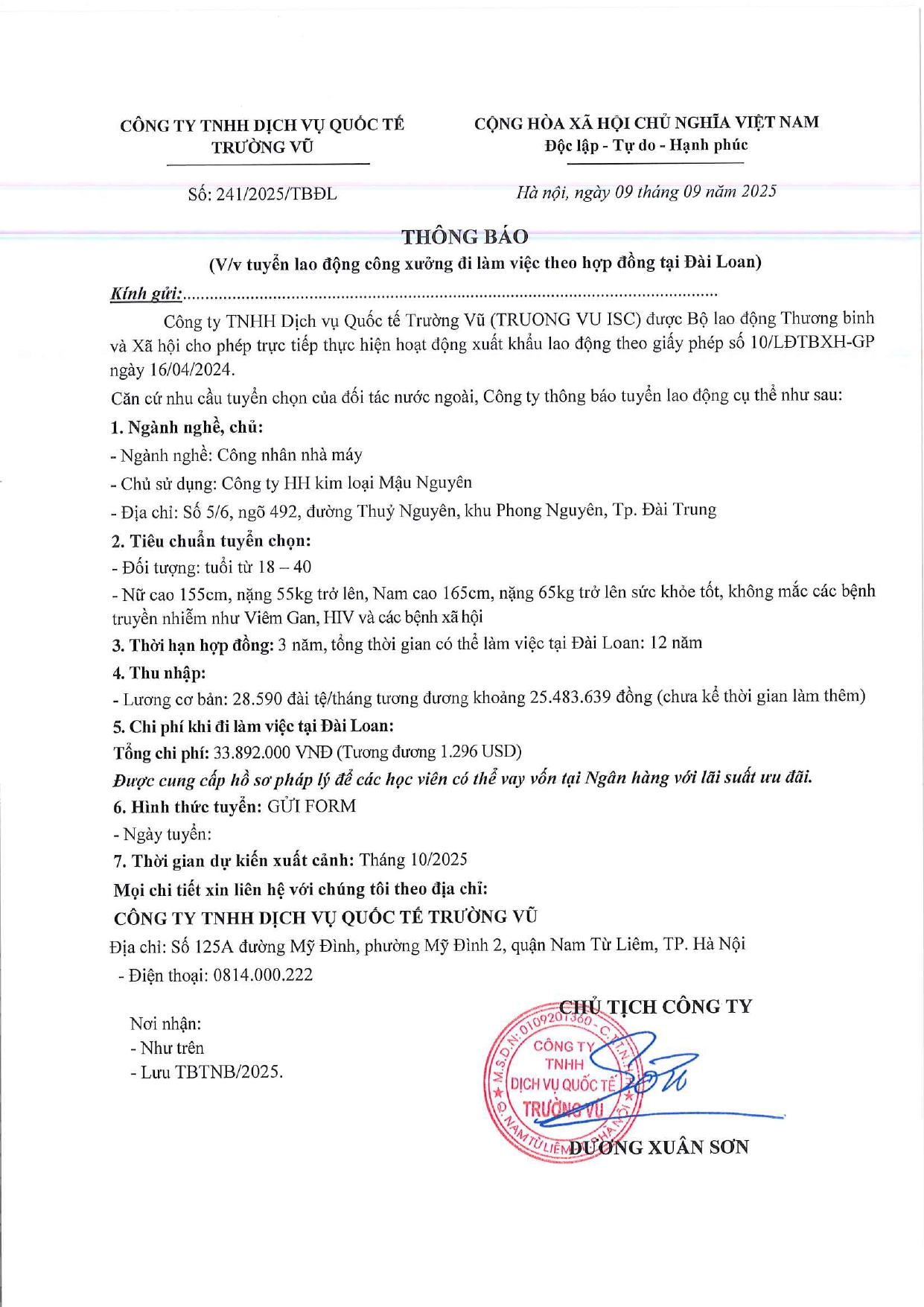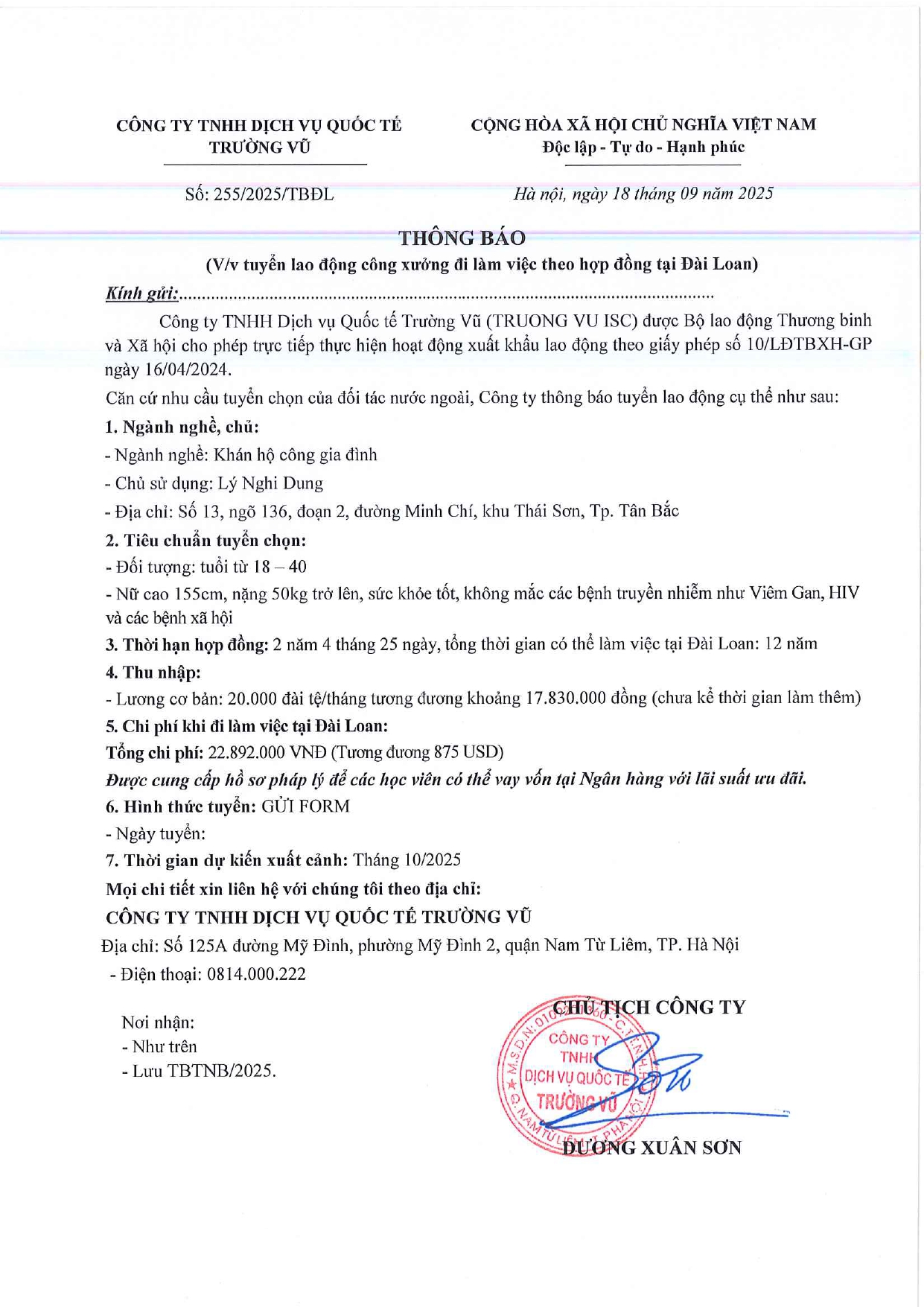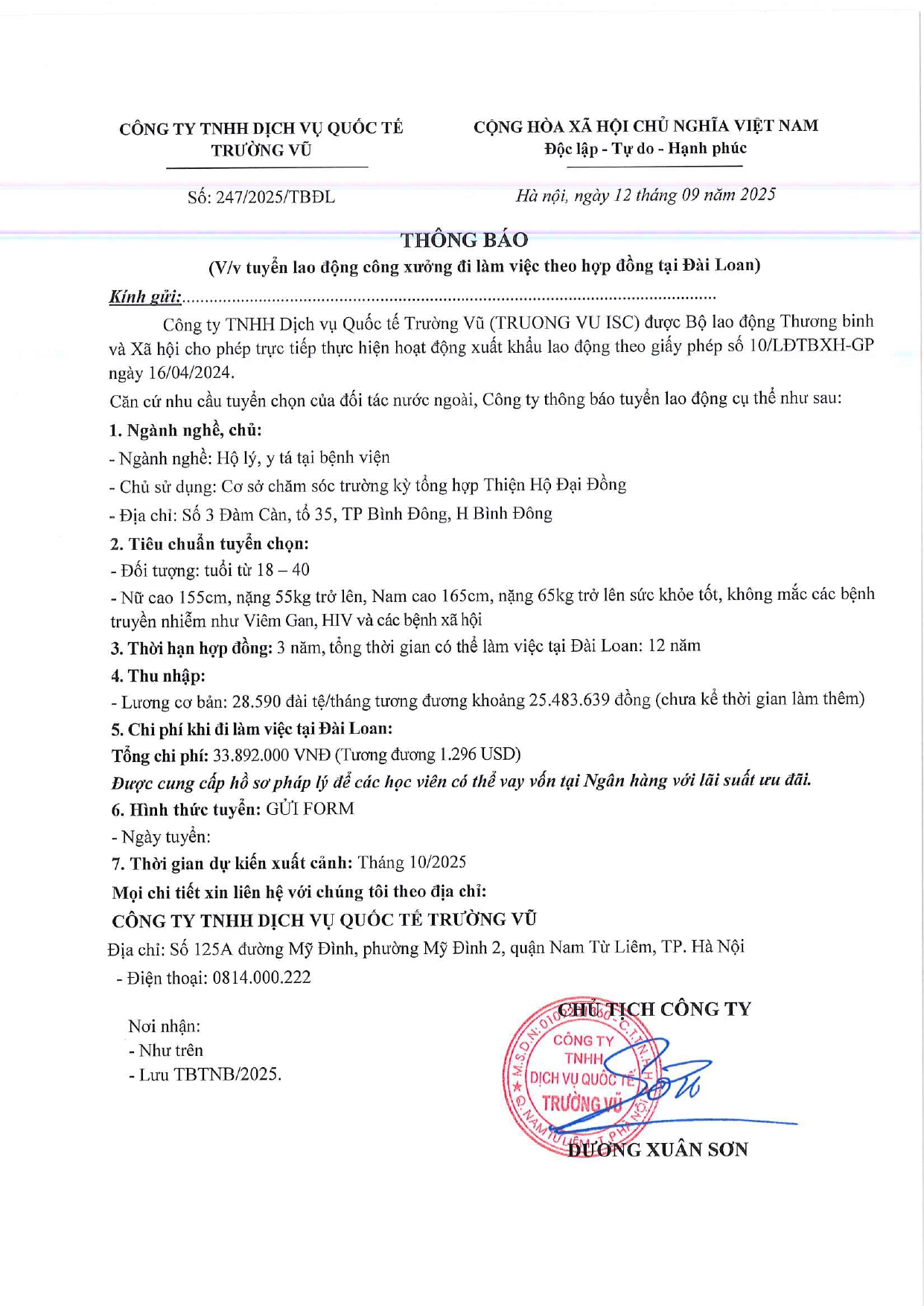Tin tức, Tin tức về thị trường lao động, Tuyển dụngThông báo tuyển dụng lao động làm việc tại Đài Loan tháng 9 năm 2025 17 Tháng 10, 202512 Tháng mười một, 2025 - Trường vũ - 188 lượt xem
