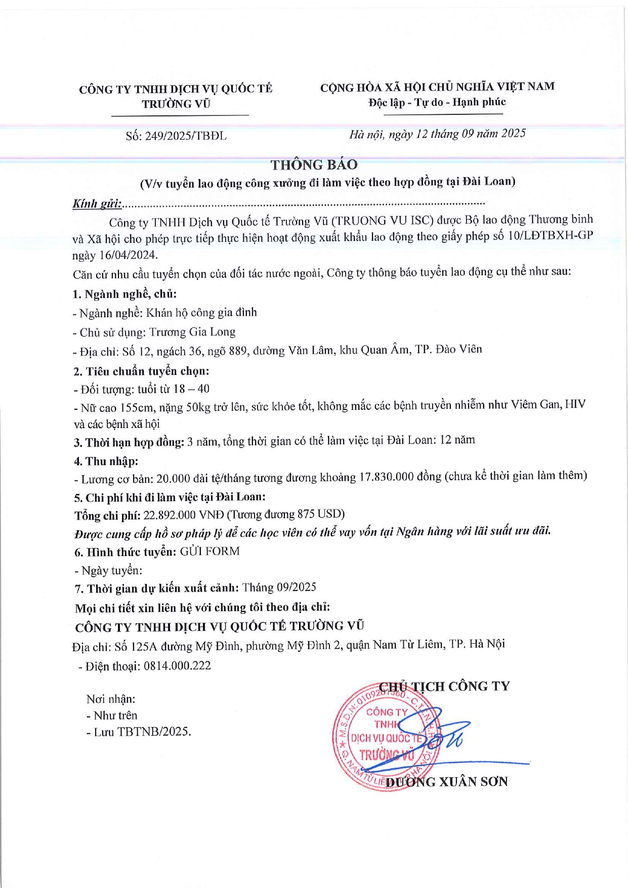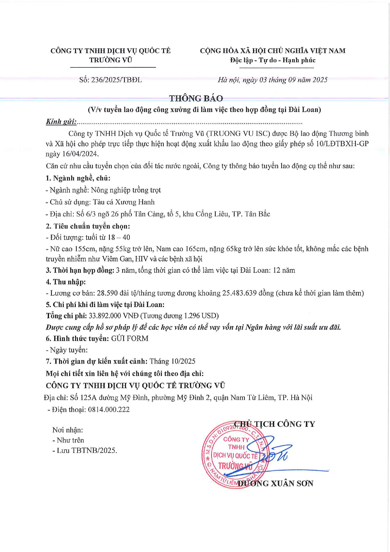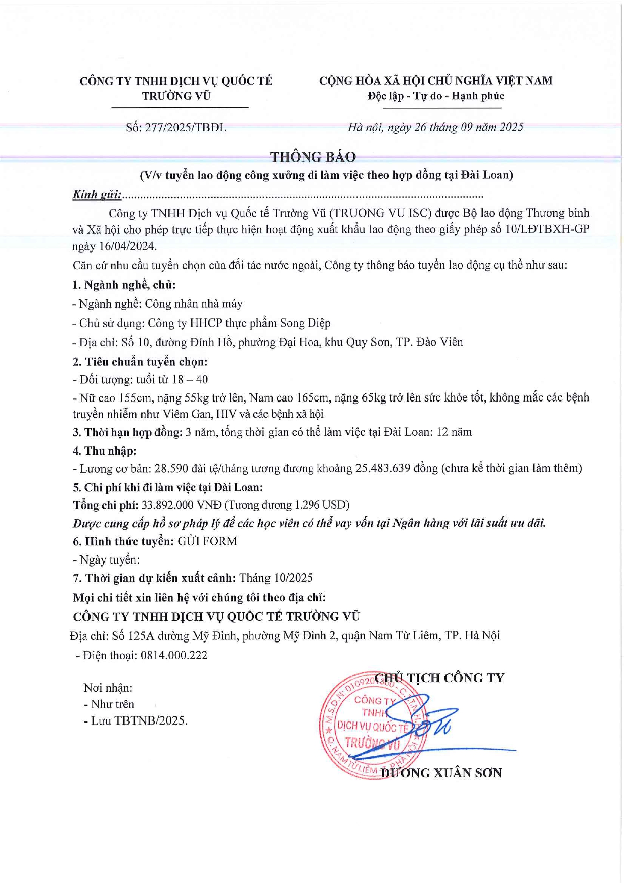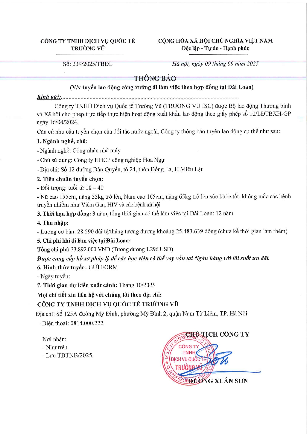 Tin tức, Tin tức về thị trường lao động, Tuyển dụngThông báo tuyển dụng lao động làm việc tại Đài Loan tháng 9 năm 2025 17 Tháng 10, 202512 Tháng mười một, 2025 - Trường vũ - 188 lượt xem