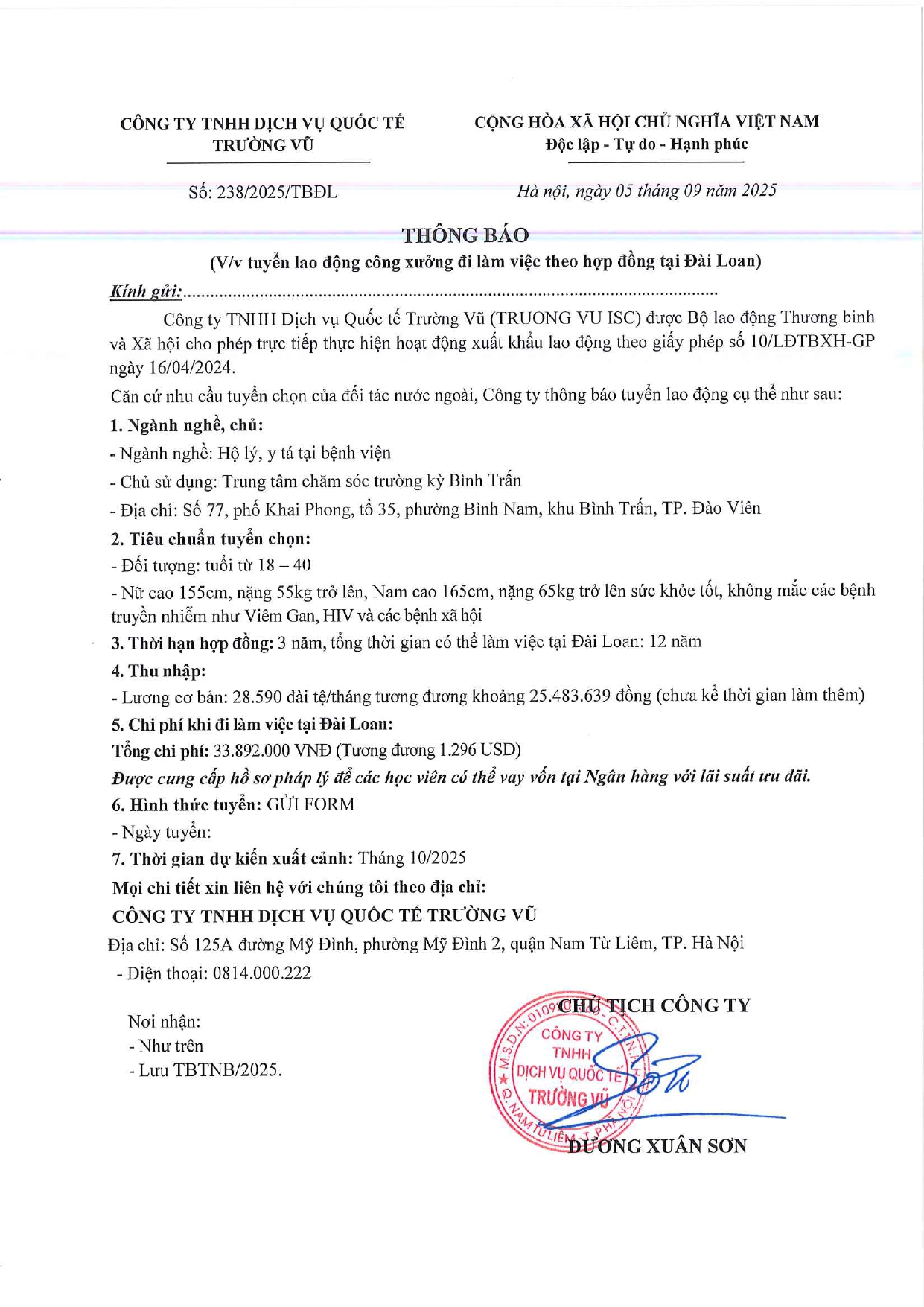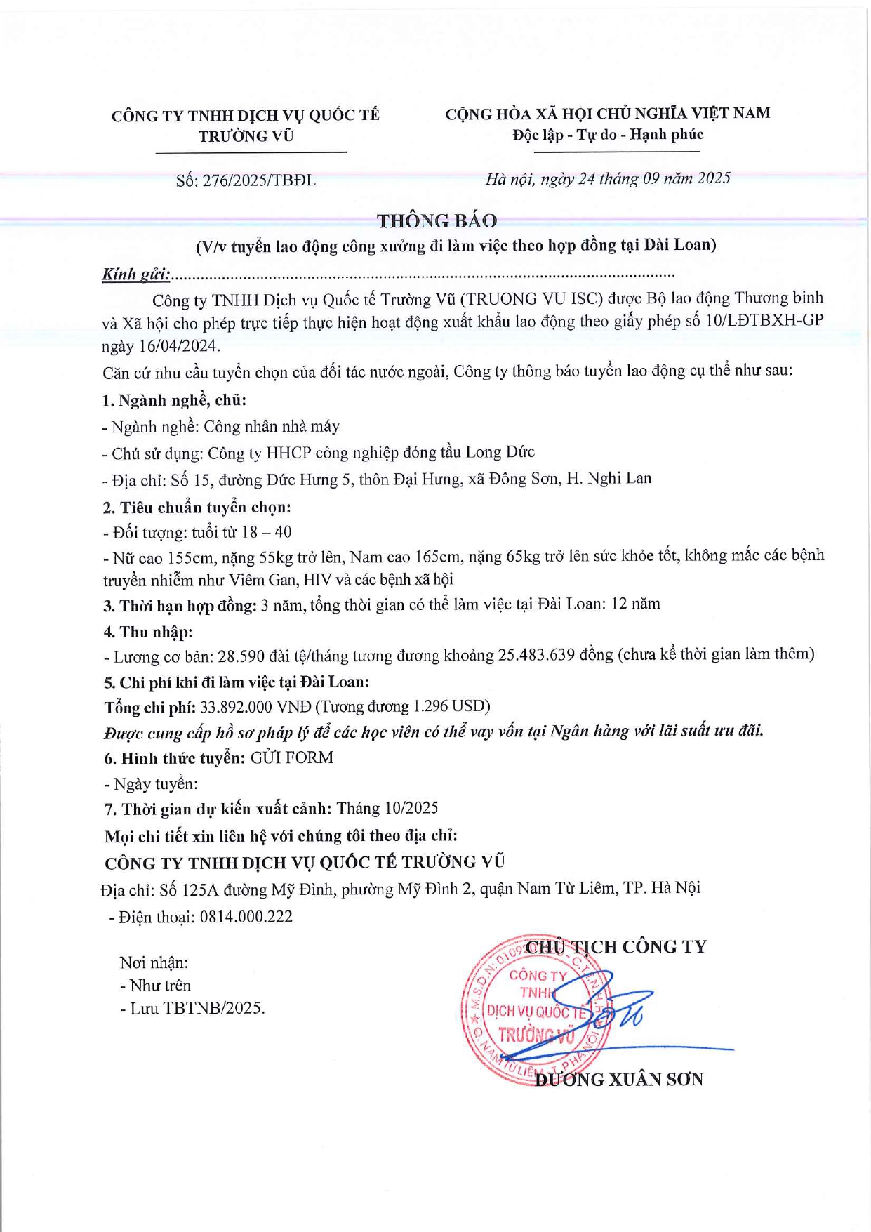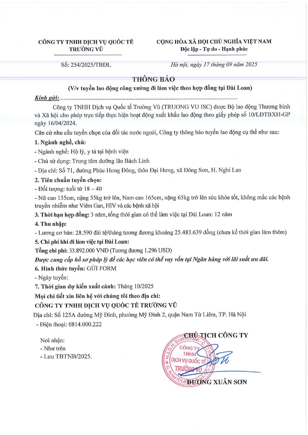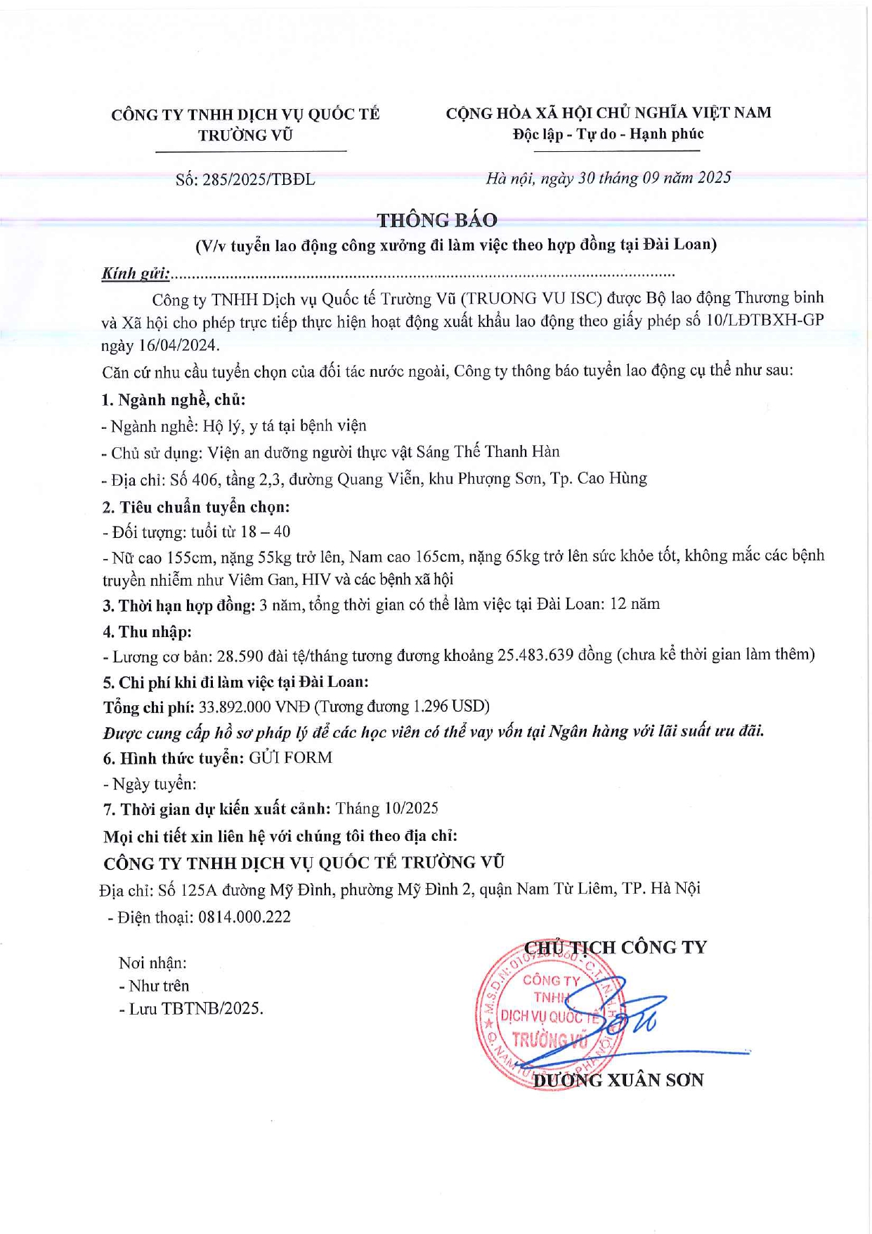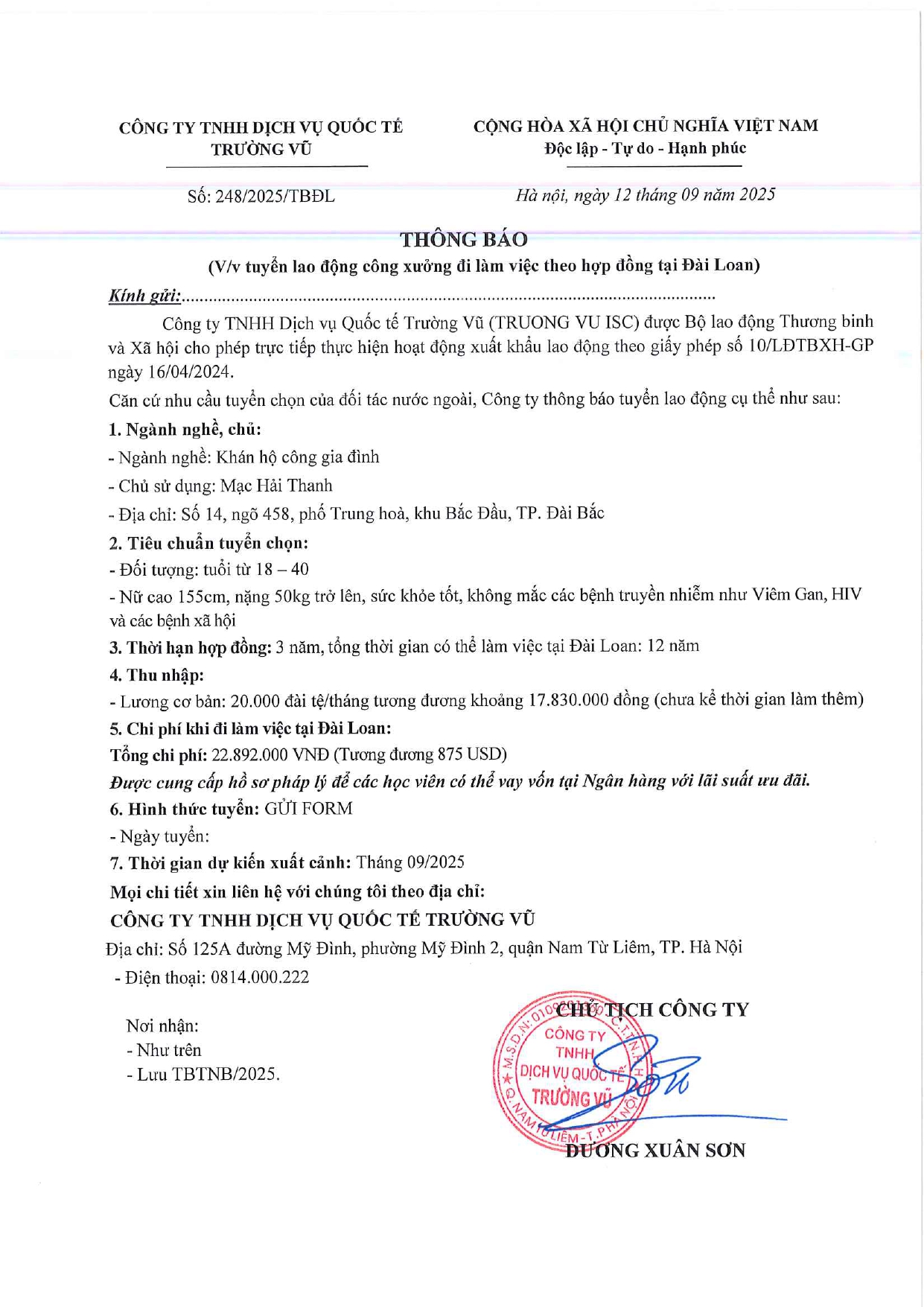 Tin tức, Tin tức về thị trường lao động, Tuyển dụngThông báo tuyển dụng lao động làm việc tại Đài Loan tháng 9 năm 2025 17 Tháng 10, 202512 Tháng mười một, 2025 - Trường vũ - 188 lượt xem